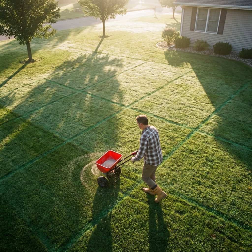 Here is the trick the pros use — apply half the recommended rate in one direction (north to south), then apply the other half in a perpendicular direction (east to west). This gives you overlapping coverage that fills in any thin spots from the first pass.