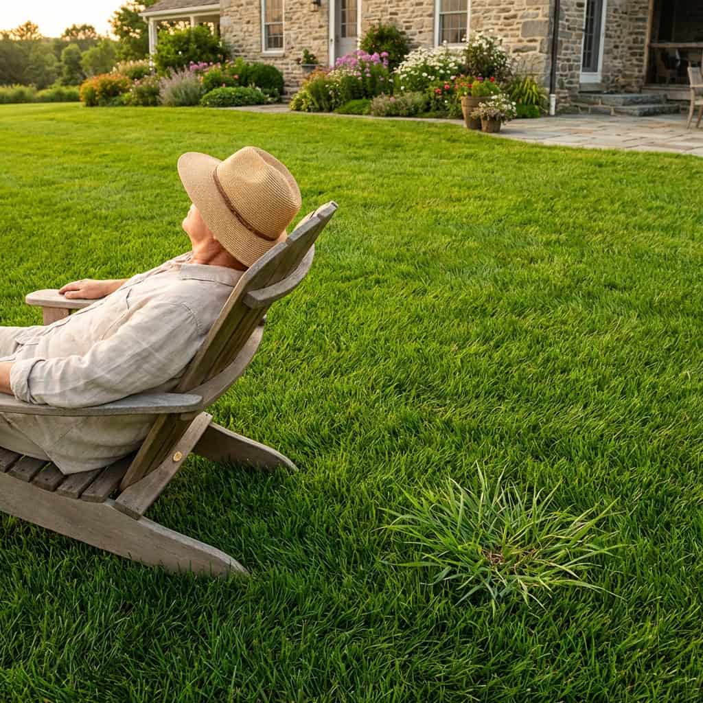 A thick, dense, healthy lawn chokes out weeds naturally. Crabgrass needs sunlight to germinate — if your turf is thick enough that sunlight cannot reach the soil surface, many crabgrass seeds will never sprout even without a pre-emergent application.