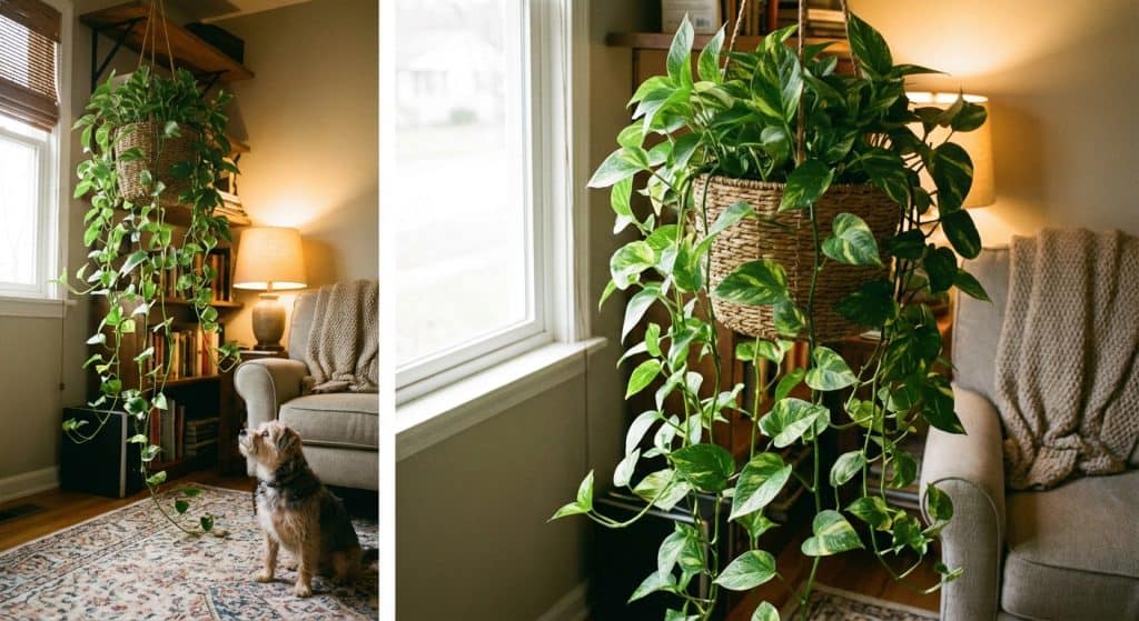 The Pet-Safe Swap: Hang a Peperomia. They have similar heart-shaped leaves but no hidden dangers.