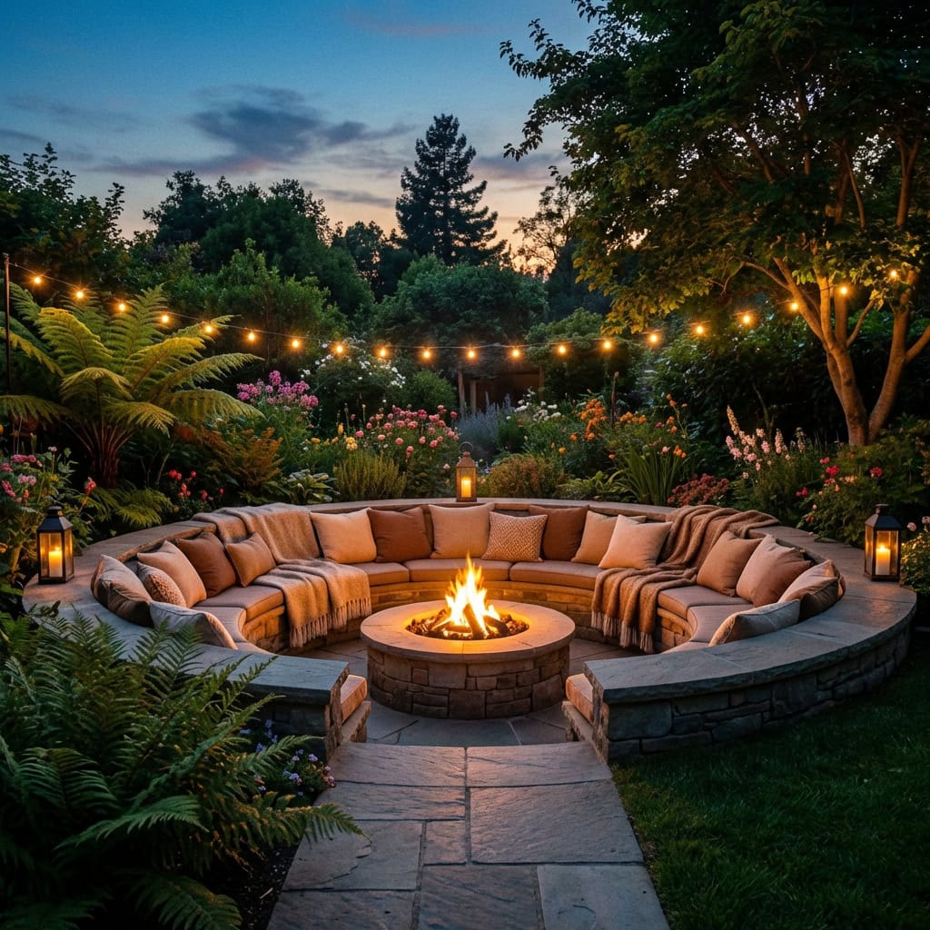 1. The Sunken Fire Pit Lounge with Curved Stone Seating