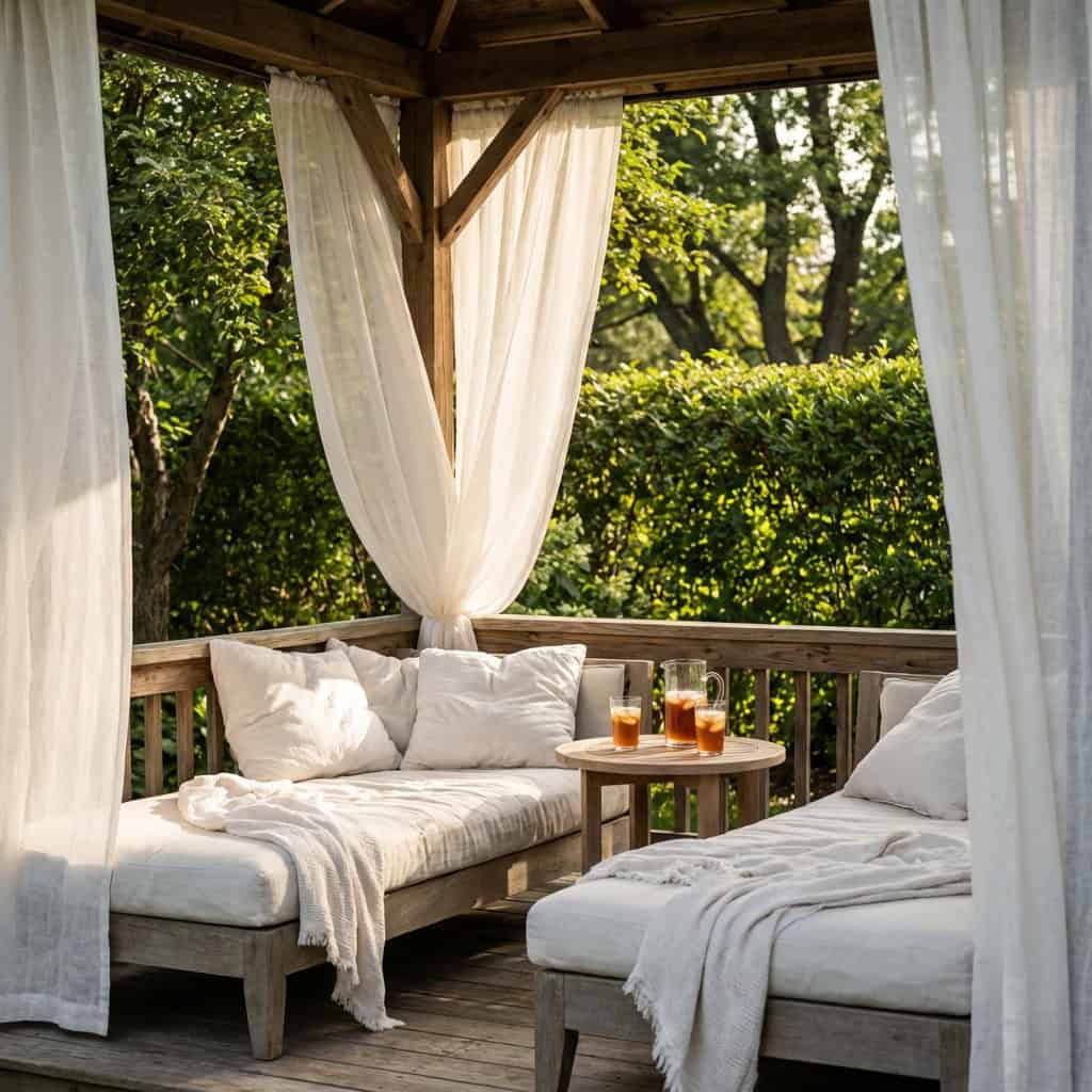 Curtains in a backyard have no business looking as good as they do. They move with the slightest breeze, they soften the structure they hang from, and they make every photo look like it was taken on vacation.