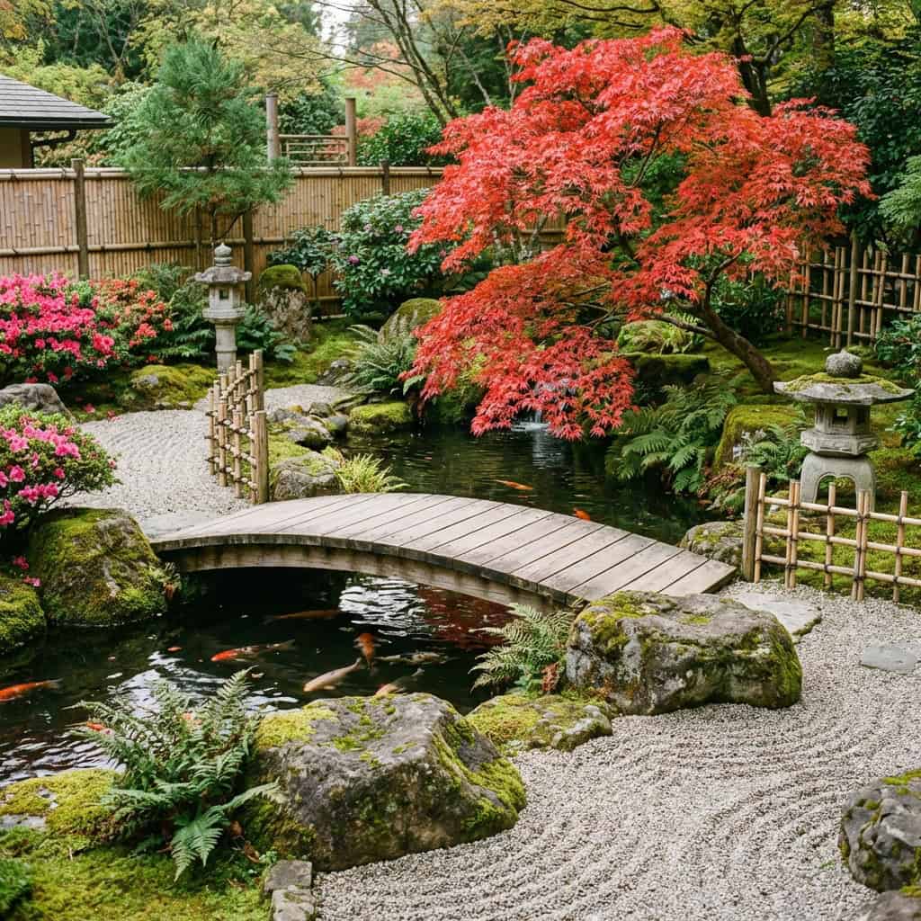 8. The Japanese Zen Garden with Koi Pond and Bridge