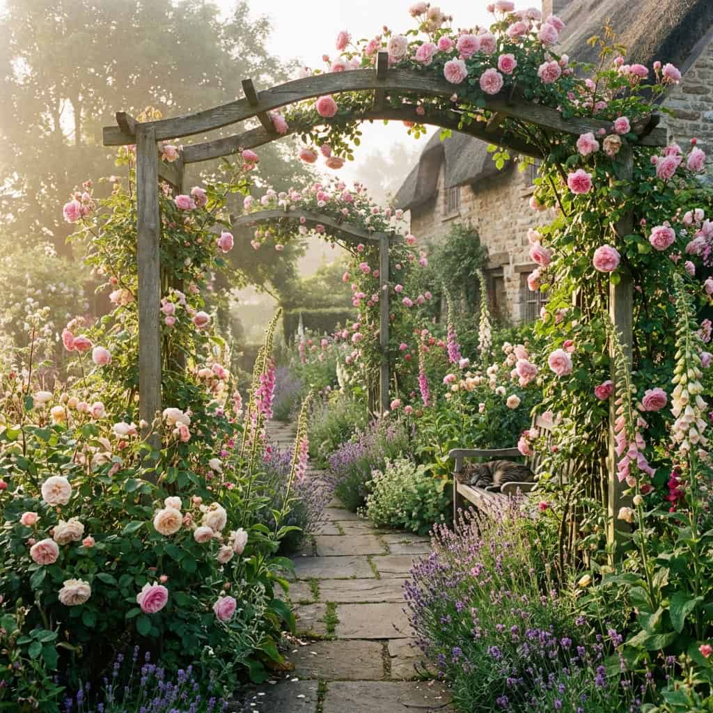 The English cottage garden is controlled chaos. Roses tumbling over arbors, foxgloves spiking up between hollyhocks, lavender spilling onto the path.