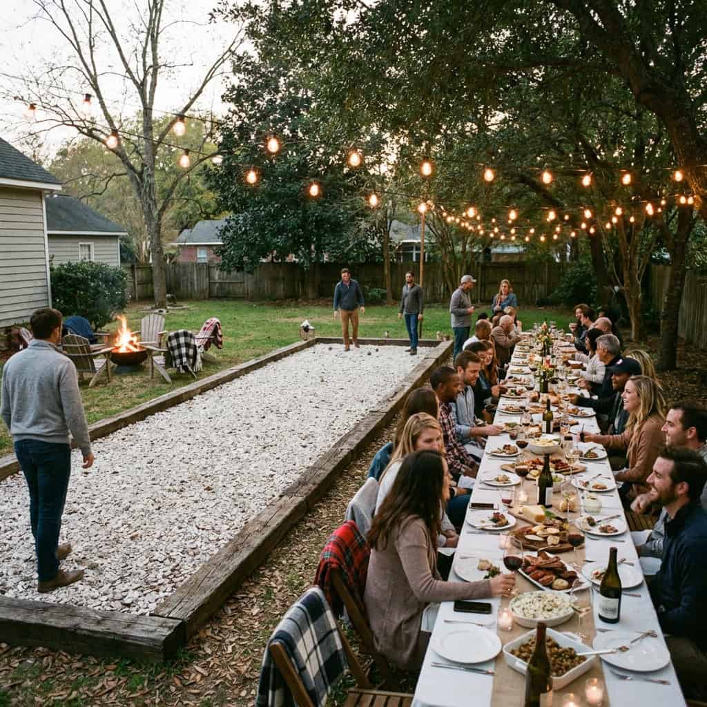A bocce court is one of those features that sounds excessive until you have one. Then it becomes the thing every gathering revolves around.