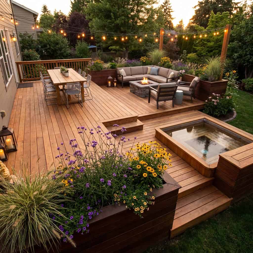 18. The Multi-Level Deck with Built-In Planters