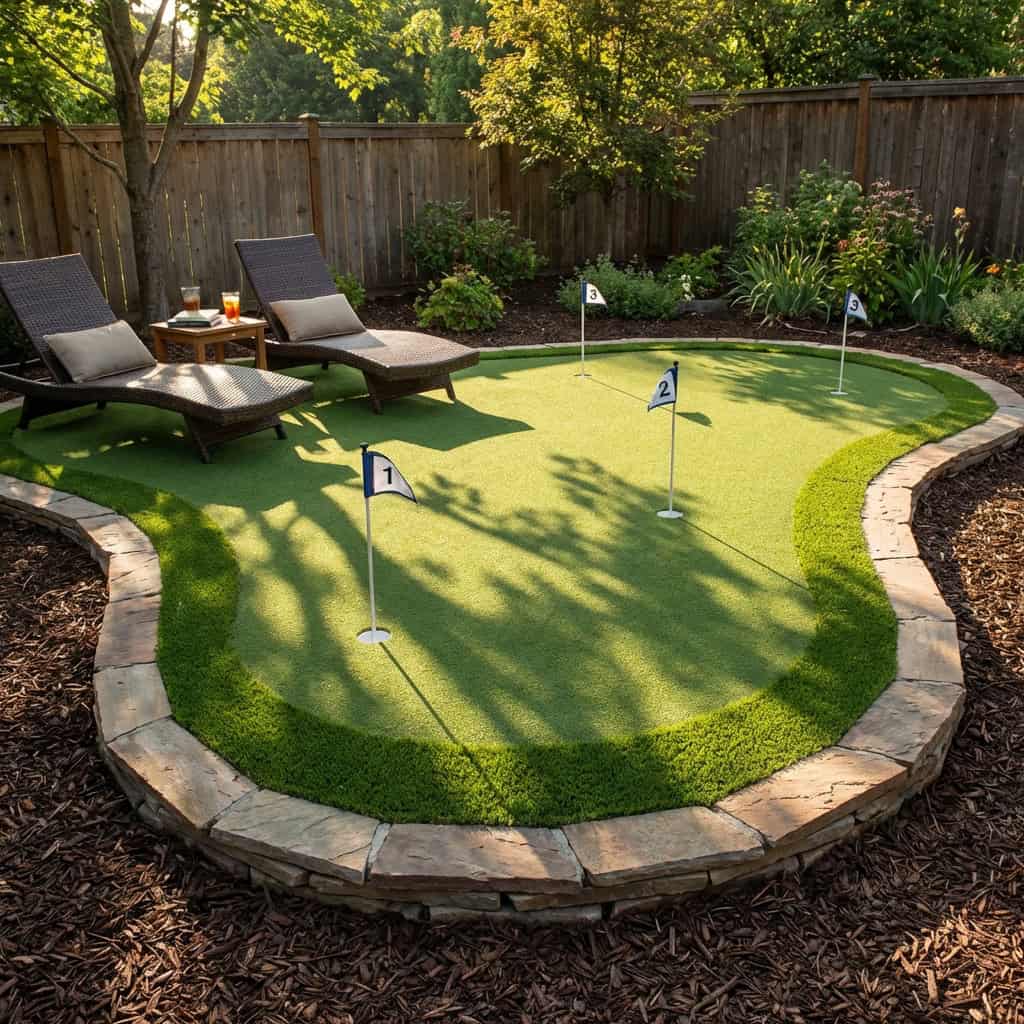 A backyard putting green is the kind of thing that sounds extra until you watch a guest spend forty-five minutes on it without realizing.