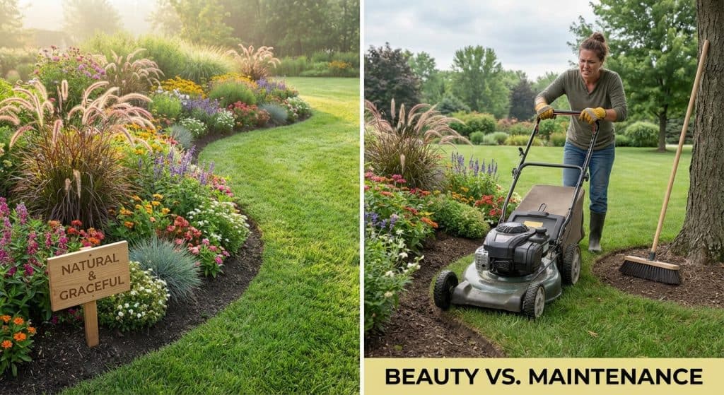 The downside is maintenance. Curves are harder to mow and edge cleanly compared to straight lines.
