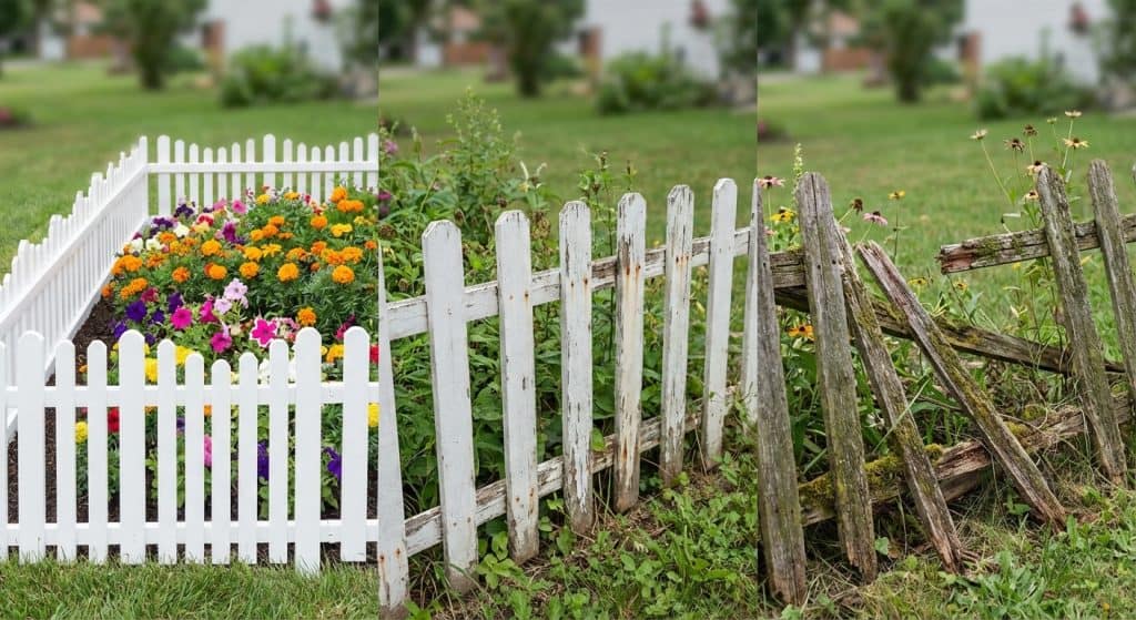 Short accent fences add visual structure to flower beds. They give the yard a finished appearance.