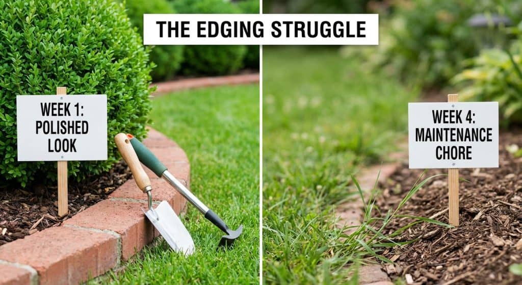 The problem is that edges don’t stay crisp for long. Grass creeps, soil erodes, and weather slowly softens those clean lines.