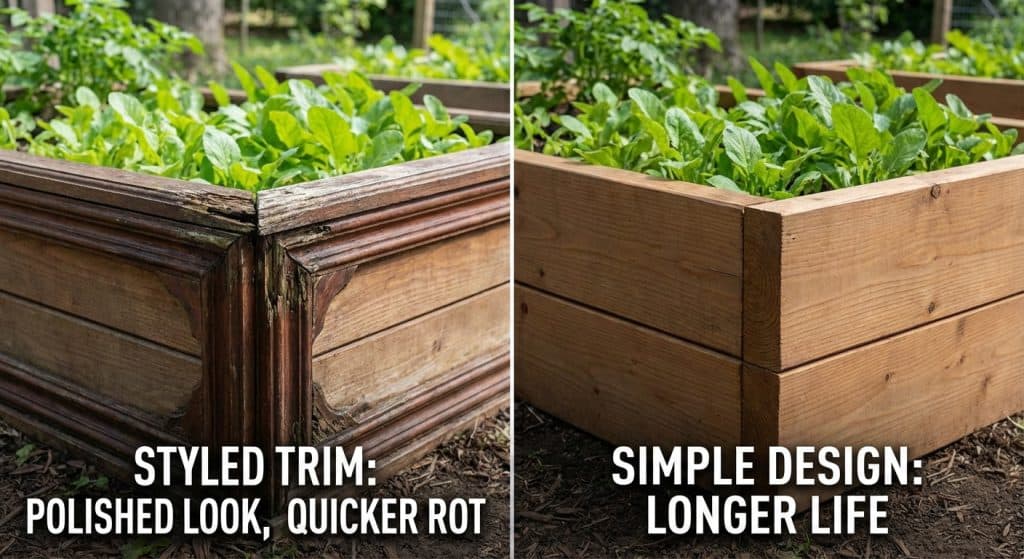 Decorative trim gives raised beds a polished look. It adds visual interest and contrast.