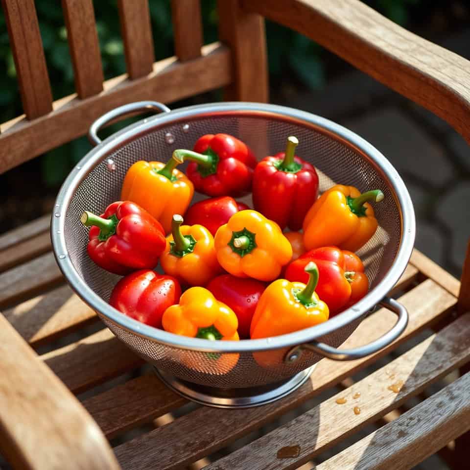 Let them ripen on the vine to get that sweet flavor you pay a premium for at the store. Slice them and freeze them for easy fajitas in the winter.