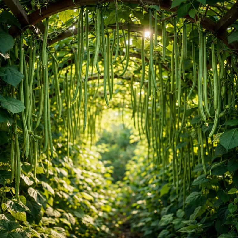 They grow vertically, saving you precious ground space. As long as you keep picking them, the vines keep producing new beans.